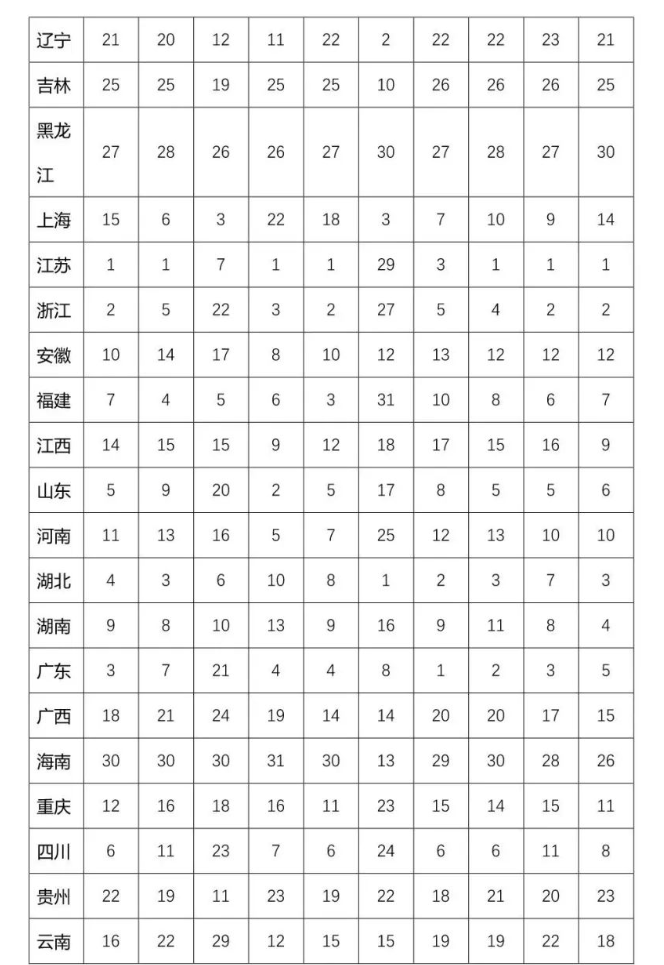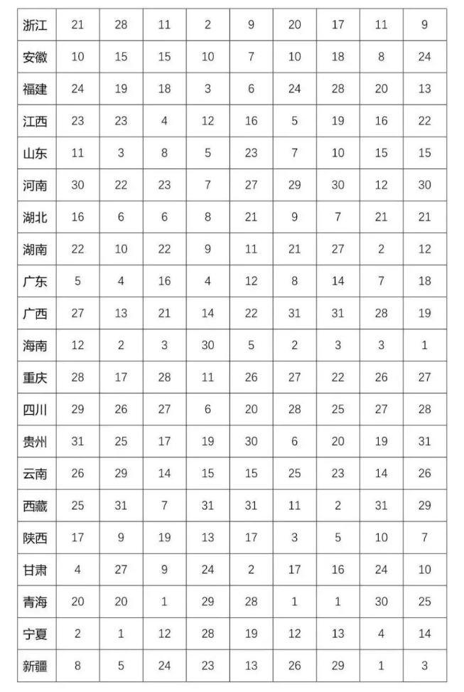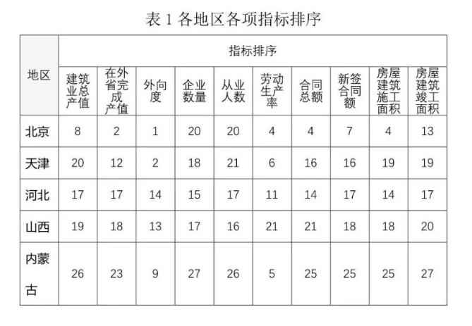 表1和表2分別列出了各地區(qū)各項(xiàng)指標(biāo)及其增長情況的排序結(jié)果。