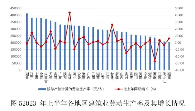 2023年上半年,按建筑業(yè)總產(chǎn)值計(jì)算的勞動(dòng)生產(chǎn)率為282986元/人,同比增長 1.50%。